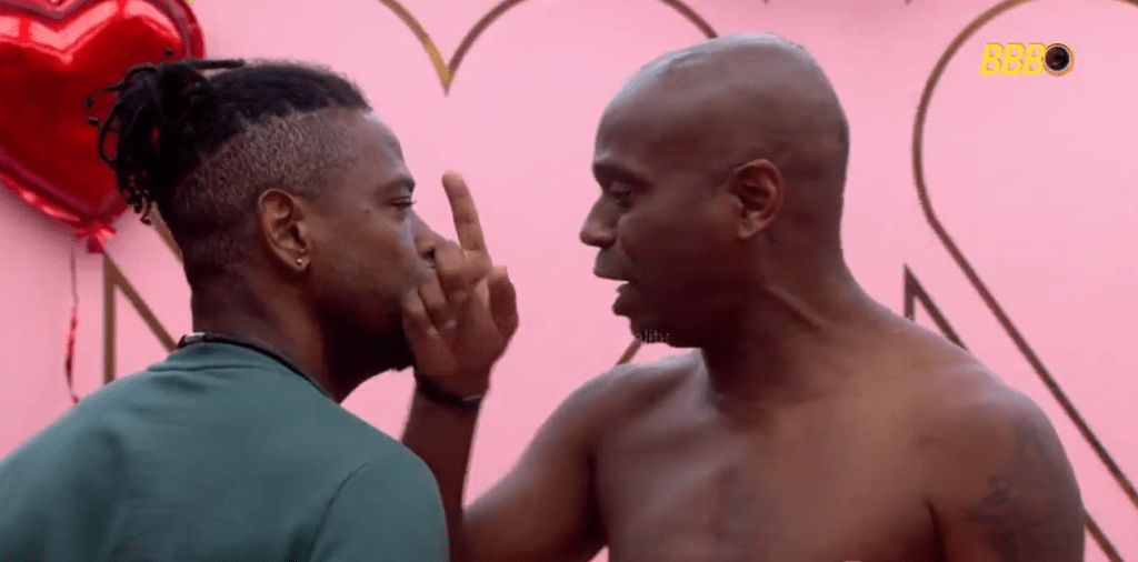Ao rebater a fala de Boneco, o campeão mundial sobe o nível da discussão ao afirmar que o brother não faria isso fora do reality, porque seria agredido: “Você tá tirando essa onda, porque está aqui dentro. Lá fora você tinha tomado uns ‘paus’, você sabe disso, né?