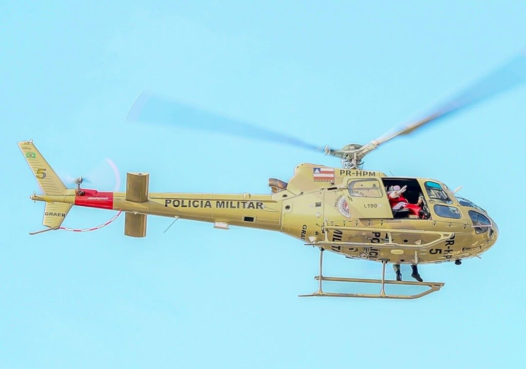 Um dos momentos mais aguardados da programação foi a chegada do Papai Noel em um helicóptero do Grupamento Aéreo, Graer, que encantou o público infantil. Após o pouso, o “Bom Velhinho” interagiu com as crianças, tirou fotos e recebeu os pedidos dos pequenos, criando um clima de alegria e encantamento.